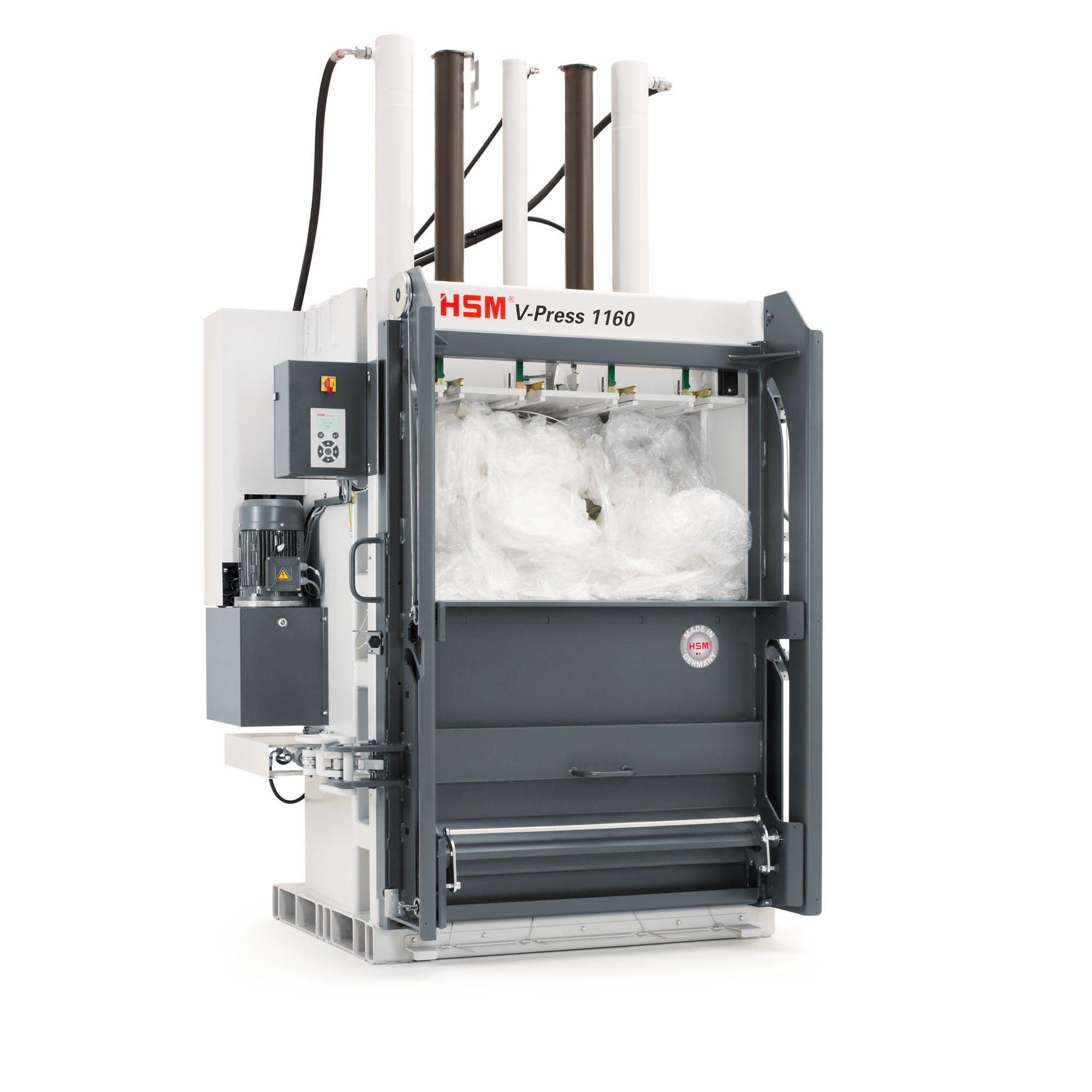 Maksimum 550 kg balya ağırlığı, kuvvetli presleme gücü ve yüksek seviyede etkinlik düzeyi ile HSM V-Press 1160 modeli HSM V-Press serisinin en üst modelidir.